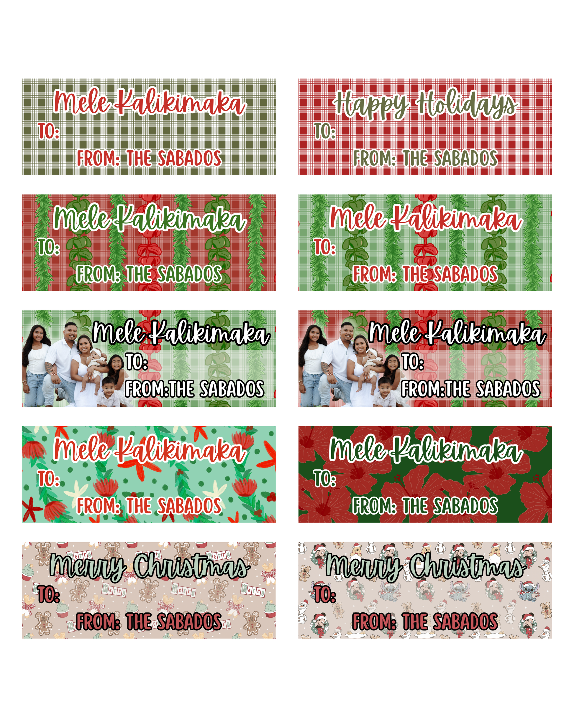 Make gifting easy w/ your Ohana's name included. Just add "To:" and your ready to label all your Christmas Gifts.